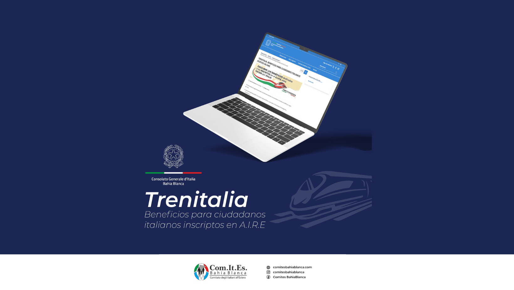 TRENITALIA. BENEFICIOS PARA CIUDADANOS ITALIANOS INSCRIPTOS EN AIRE Trenitalia reserva las siguientes ventajas a los italianos residentes en el extranjero e inscritos en el AIRE que viajen por Italia: * Descuentos de hasta el 80 % con la oferta «Speciale Eventi», para viajar en Frecciarossa, Frecciargento y Frecciabianca. * Reducción del 40 % por la […]