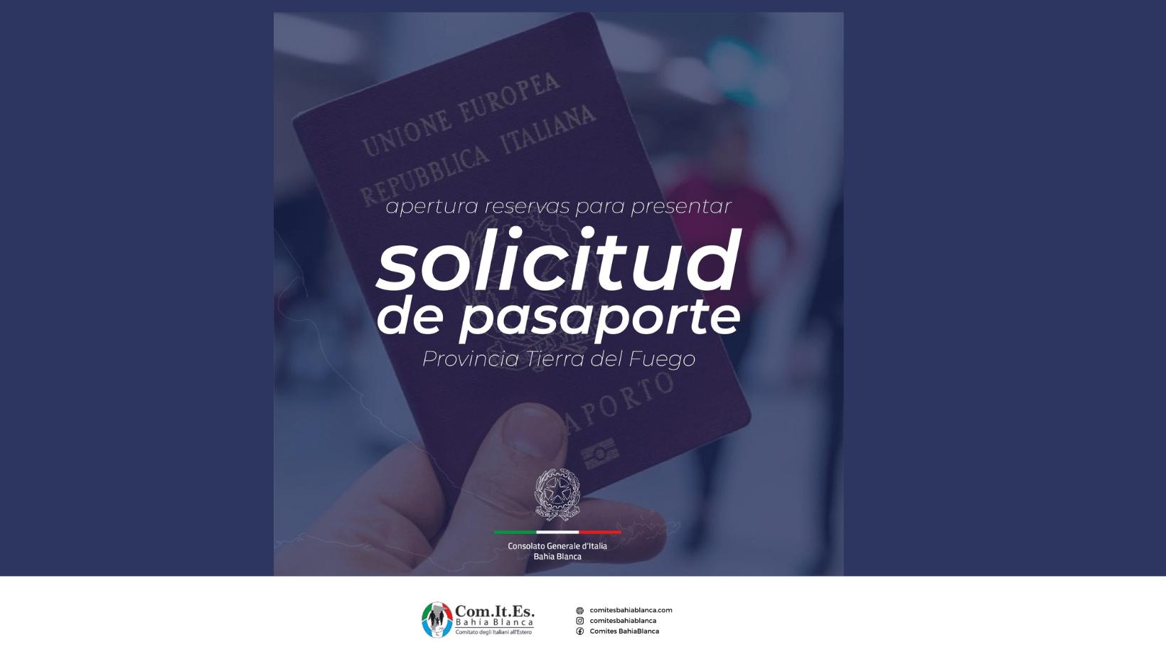 A partir de las 12.00 horas del 04/04/2024, los residentes en la provincia de Tierra del Fuego podrán reservar, a través del sistema de reservas Prenot@mi, un turno para presentar la solicitud de emisión de pasaporte en la sede de la Agencia Consular en Ushuaia. ➡️ Toda la información en el sitio web: https://consbahiablanca.esteri.it/.../provincia-tierra.../