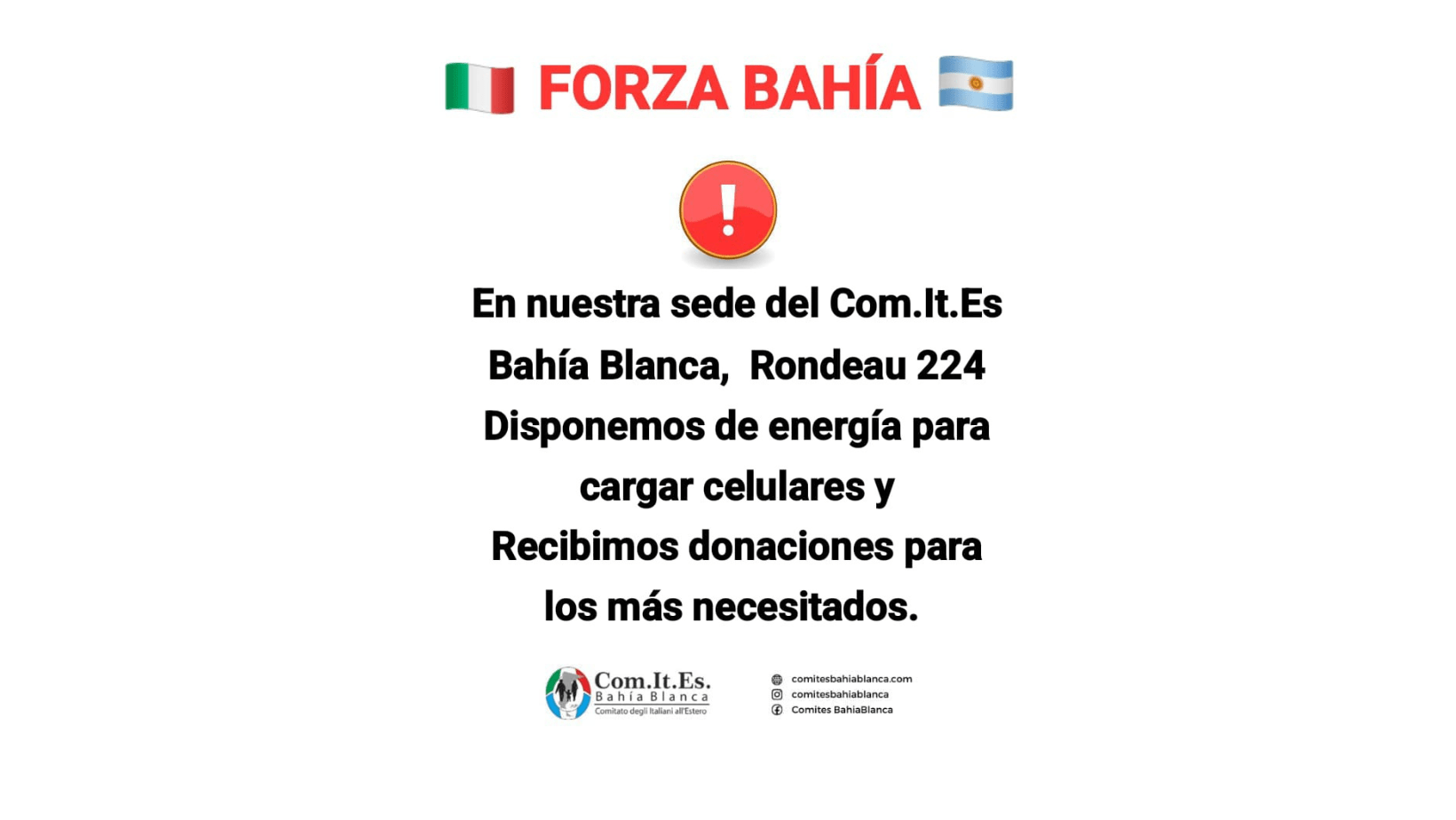 En el marco de la emergencia que vive nuestra ciudad, el Com.It.Es Bahía Blanca se suma como sede de recepción de ayuda para los más necesitados. 📌Por un lado, en nuestra sede de Rondeau 224 disponemos de enchufes y acceso al WiFi para quien lo necesite. 📌Por otro lado invitamos a los vecinos a colaborar […]