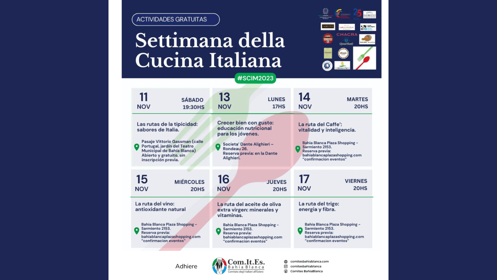 ¡𝗖𝗲𝗹𝗲𝗯𝗿𝗲𝗺𝗼𝘀 𝗷𝘂𝗻𝘁𝗼𝘀 𝗲𝗹 𝘀𝗮𝗯𝗼𝗿 𝘆 𝗹𝗮 𝘁𝗿𝗮𝗱𝗶𝗰𝗶𝗼́𝗻 𝗱𝗲 𝗜𝘁𝗮𝗹𝗶𝗮 𝗲𝗻 𝗹𝗮 𝗦𝗲𝘁𝘁𝗶𝗺𝗮𝗻𝗮 𝗱𝗲𝗹𝗹𝗮 𝗖𝘂𝗰𝗶𝗻𝗮 𝗜𝘁𝗮𝗹𝗶𝗮𝗻𝗮 𝟮𝟬𝟮𝟯! Los esperamos a todos los amantes de la gastronomía a una semana repleta de actividades culinarias: degustaciones, charlas, clases y mucho más. Este año el tema es “𝘈 𝘵𝘢𝘷𝘰𝘭𝘢 𝘤𝘰𝘯 𝘭𝘢 𝘤𝘶𝘤𝘪𝘯𝘢 𝘪𝘵𝘢𝘭𝘪𝘢𝘯𝘢: 𝘣𝘦𝘯𝘦𝘴𝘴𝘦𝘳𝘦 𝘤𝘰𝘯 𝘨𝘶𝘴𝘵𝘰” ("A […]