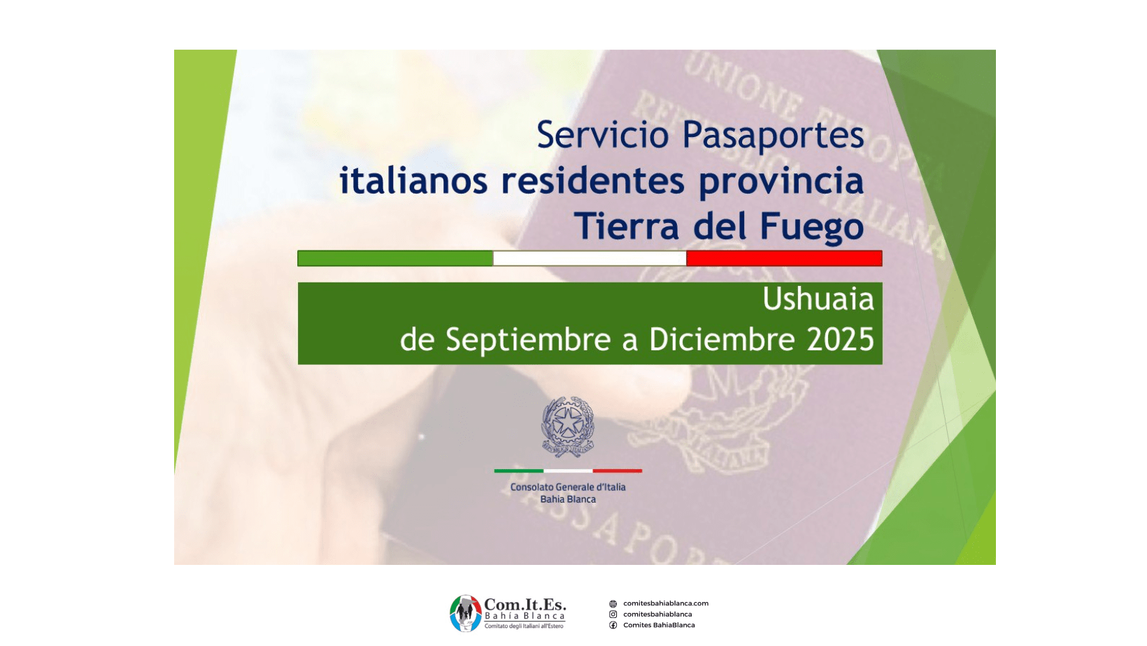 A partir de las 16.00 horas del día 18/08/2025, los ciudadanos italianos exclusivamente residentes en la provincia de Tierra del Fuego (se cancelarán los turnos obtenidos por residentes en otras provincias) podrán reservar, a través del sistema de reservas Prenot@mi, un turno para presentar una solicitud para la emisión del pasaporte en las fechas disponibles […]