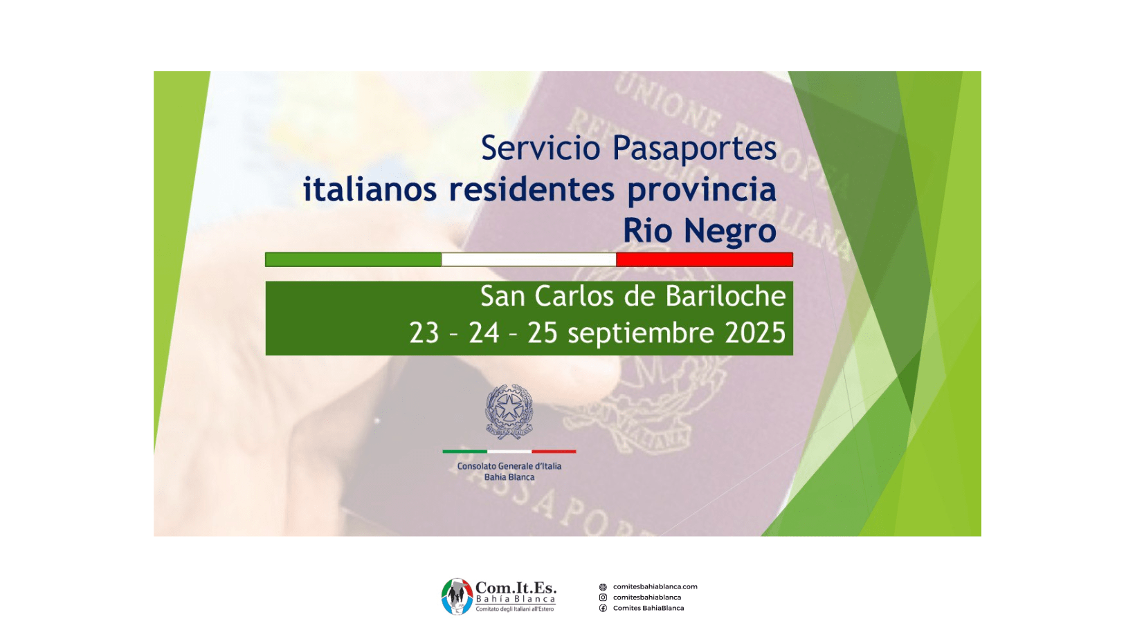 A partir de las 17.30 horas del día 02/09/2025, sólo los ciudadanos italianos residentes en la provincia de Río Negro (se anularán los turnos reservados por residentes en otras provincias) podrán reservar, a través del sistema de reservas Prenot@mi, un turno para presentar solicitud de expedición de pasaporte los días 23, 24 y 25 de […]
