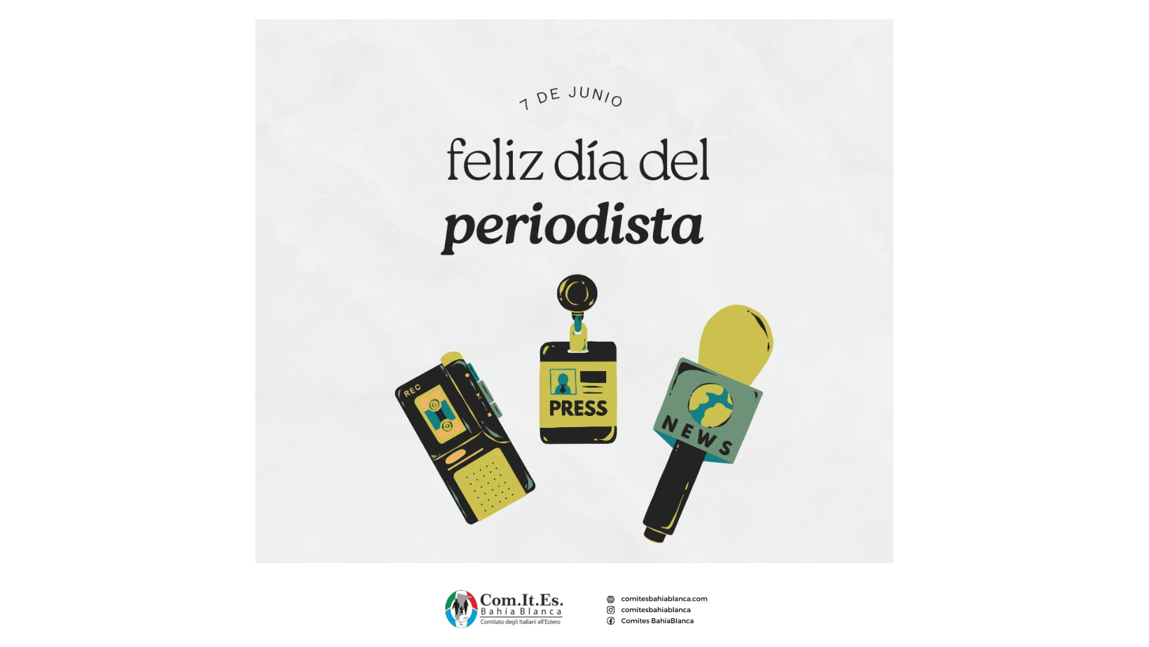 📅 7 de junio – Día del Periodista Desde el Com.It.Es Bahía Blanca, saludamos a quienes ejercen el periodismo con compromiso, responsabilidad y vocación de servicio. Su labor es fundamental para fortalecer una sociedad democrática e informada. #DíaDelPeriodista #Compromiso #Comunicación