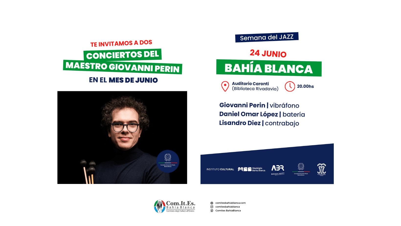 Il Consolato Generale d’Italia in Bahía Blanca presenta “Connections”, il concerto di jazz del Maestro Giovanni Perin, che apre la “Settimana del Jazz” en Bahía Blanca. Martedì 24 giugno alle ore 20.00 presso l’Auditorio Caronti (Colón 31, Biblioteca Rivadavia). Más información aquí Connections Ingresso libero con prenotazione sul sito del teatro SEMANA DEL JAZZ – Teatro Municipal, […]