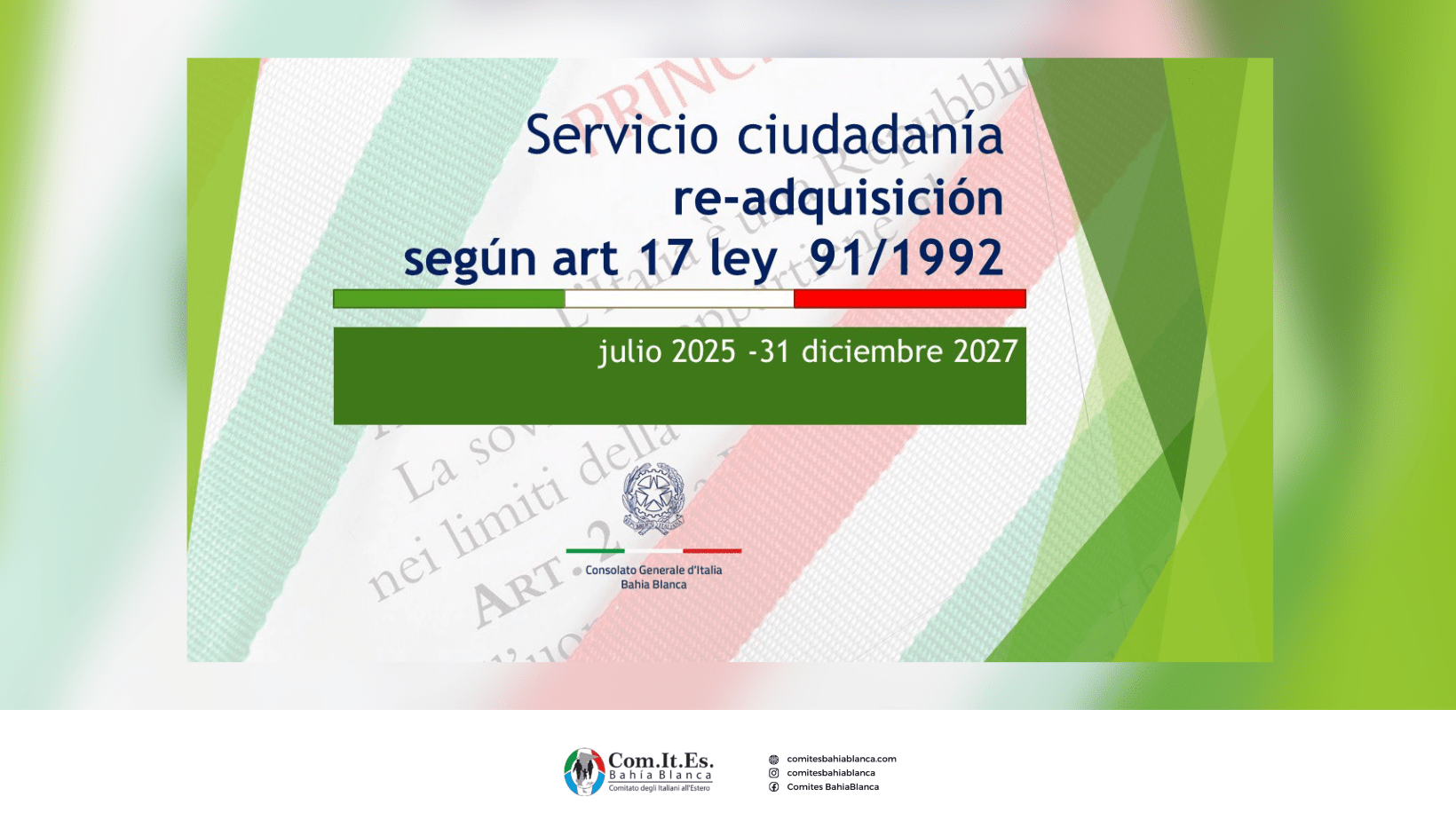 Da luglio 2025 sino al 31 dicembre 2027 e’ possibile riservare un appuntamento per presentare al Consolato Generale la dichiarazione necessaria al riacquisto della cittadinanza ex art. 17 legge N. 91 del 1992 come modificato dall’articolo 1-ter, comma 1, lettera b), del decreto legge n. 36/2025. Per maggiori informazioni, visitare la pagina ufficiale del Consolato Generale a […]