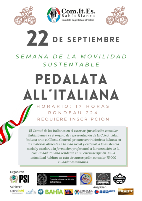 Compartimos algunas de las imágenes de lo que fue la Pedalata all´italiana o Bicicleteada a la italiana, del día de ayer. ✔️ La iniciativa fue organizada por la ONG “PSI”, en el marco de la “Semana de la movilidad sostenible”, a la que ha adherido el Consulado General de Italia en Bahía Blanca y el […]
